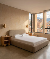 - Cabecera Baja y Redondeada: Su cabecera única, suave y redondeada, no solo aporta un toque de elegancia, sino que también crea una sensación de amplitud y apertura en tu habitación.