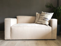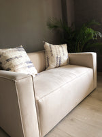 El sofá Piero está diseñado para una comodidad suprema en espacios pequeños. Las siluetas simples y cuadradas juegan un contrapunto con líneas limpias para cojines rellenos.